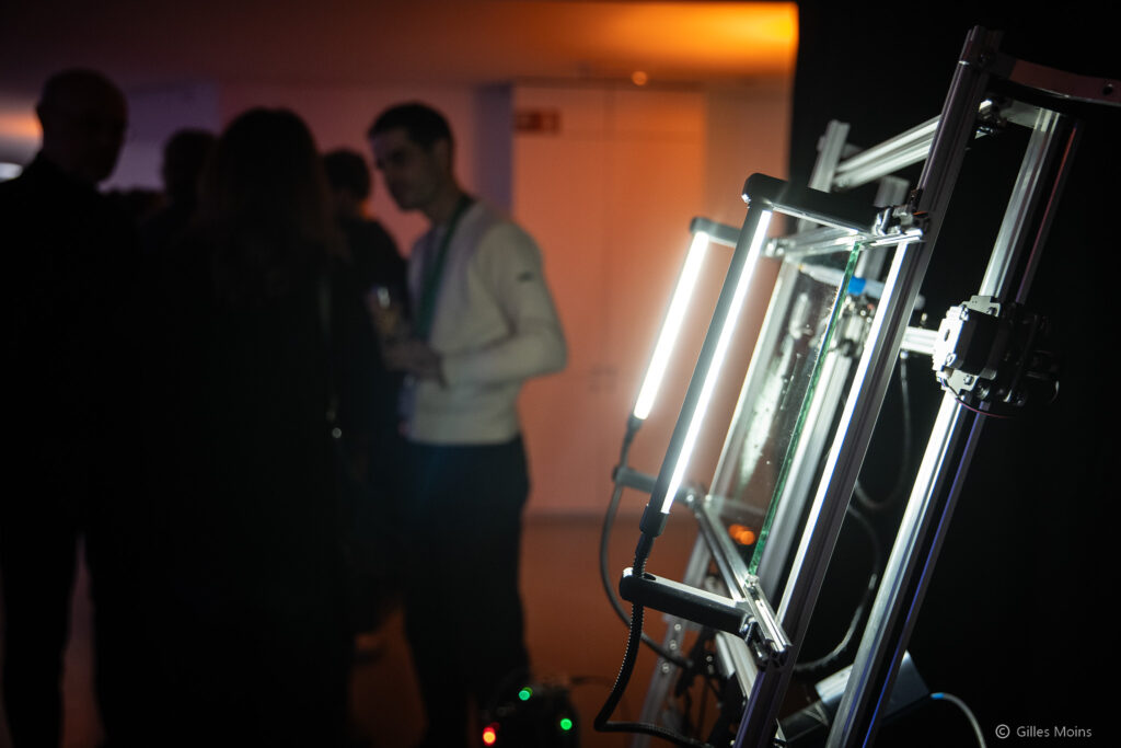 Mirek Coutigny and his band performed an original musical creation translating polarisation into unity, while choreographer Laura Loreley danced in the interludes. In collaboration with Ohme, designer Guillaume Slizewicz displayed Carbon Technostructure, an art–science research project and interactive installation developed with Gijs de Heij.